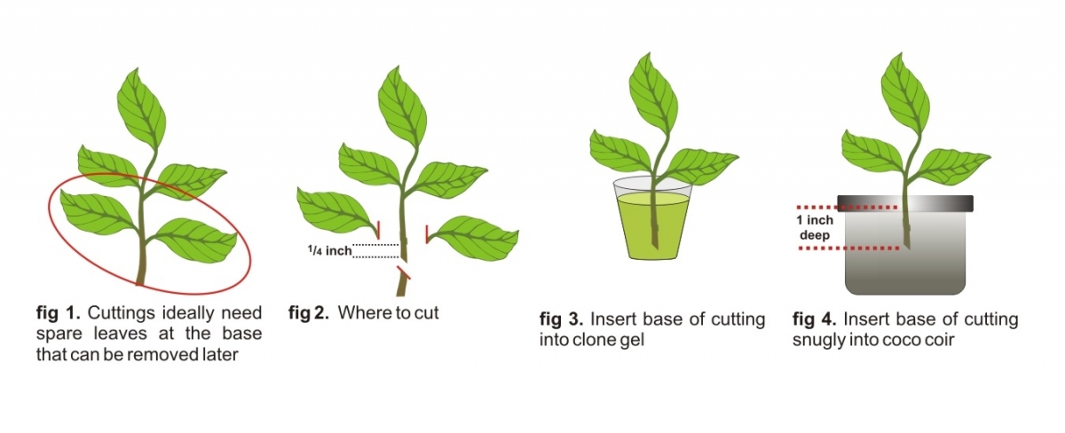 Για να δημιουργήσει έναν κλώνο, ο καλλιεργητής κόβει κλαδί από το μητρικό φυτό και το τοποθετεί σε ένα υπόστρωμα, όπου αναπτύσσει δικές του ρίζες.