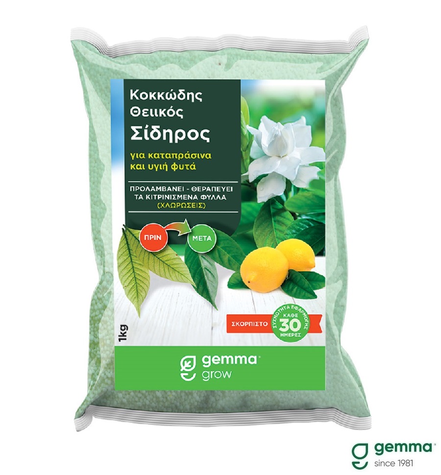 Εξειδικευμένο λίπασμα σιδήρου, που προσφέρει στα φυτά υγιές φύλλωμα και έντονο πράσινο χρώμα! Ιδανικό για όλα τα φυτά και κυρίως γαρδένιες, λεμονιές, καμέλιες, φίκους, τριανταφυλλιές, εσπεριδοειδή κ.ά. Εφαρμόζεται με διασκορπισμό στο έδαφος.